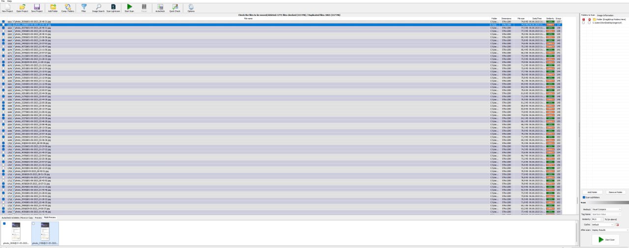 В первую очередь, удалялись файлы которые подходили под фильтр "100% сходство", а далее, сортировались до уровня визуального сходства 96.8% - 99.9%.