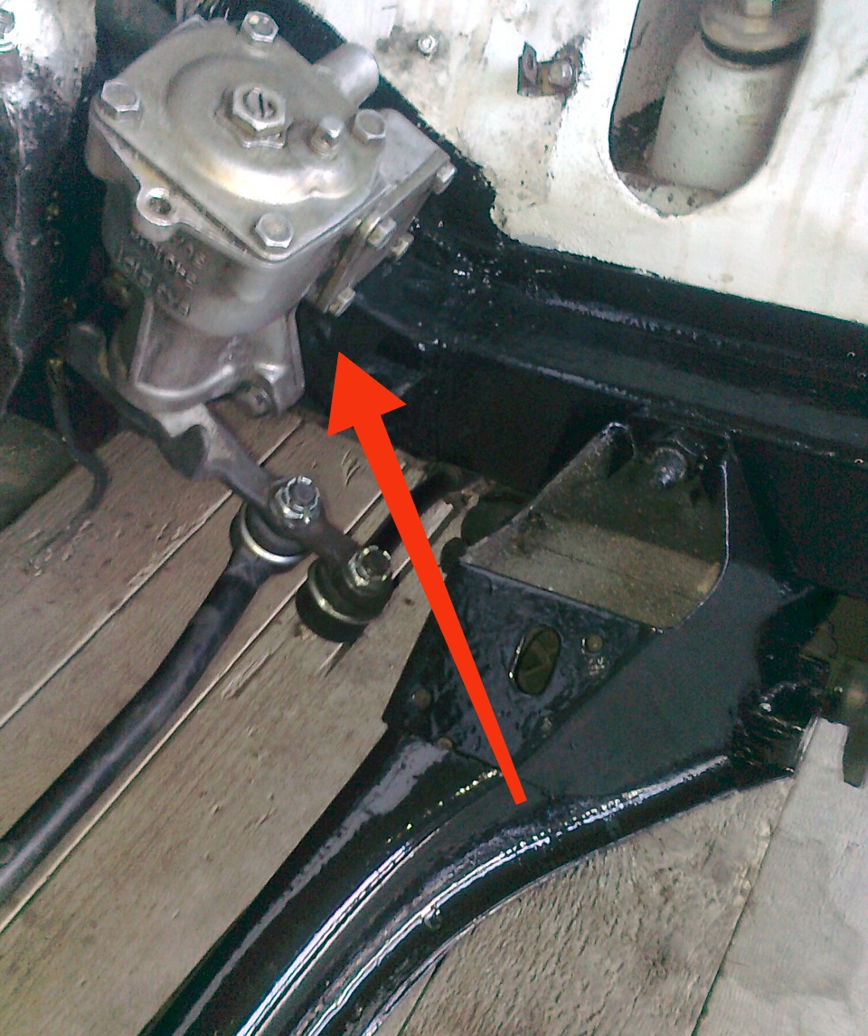 Сам рулевой редуктор крепится к левому ланжерону тремя болтами. Крепление откровенно хлипкое и зачастую в этом месте лопается ланжерон. Проблема в том, что пока не снимешь редуктор, не увидишь там трещину.