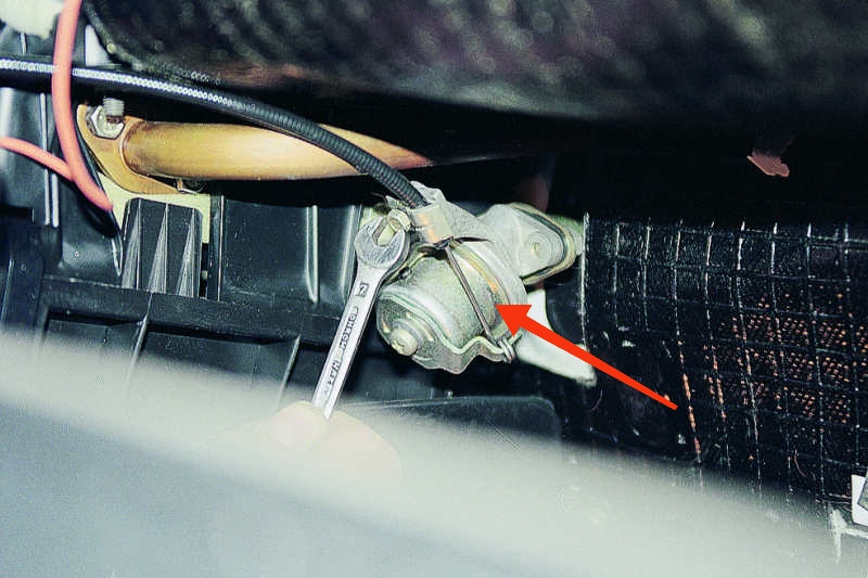 Там, под бардачком стоит кран печки,который перекрывает патрубок к радиатору отопителя салона.