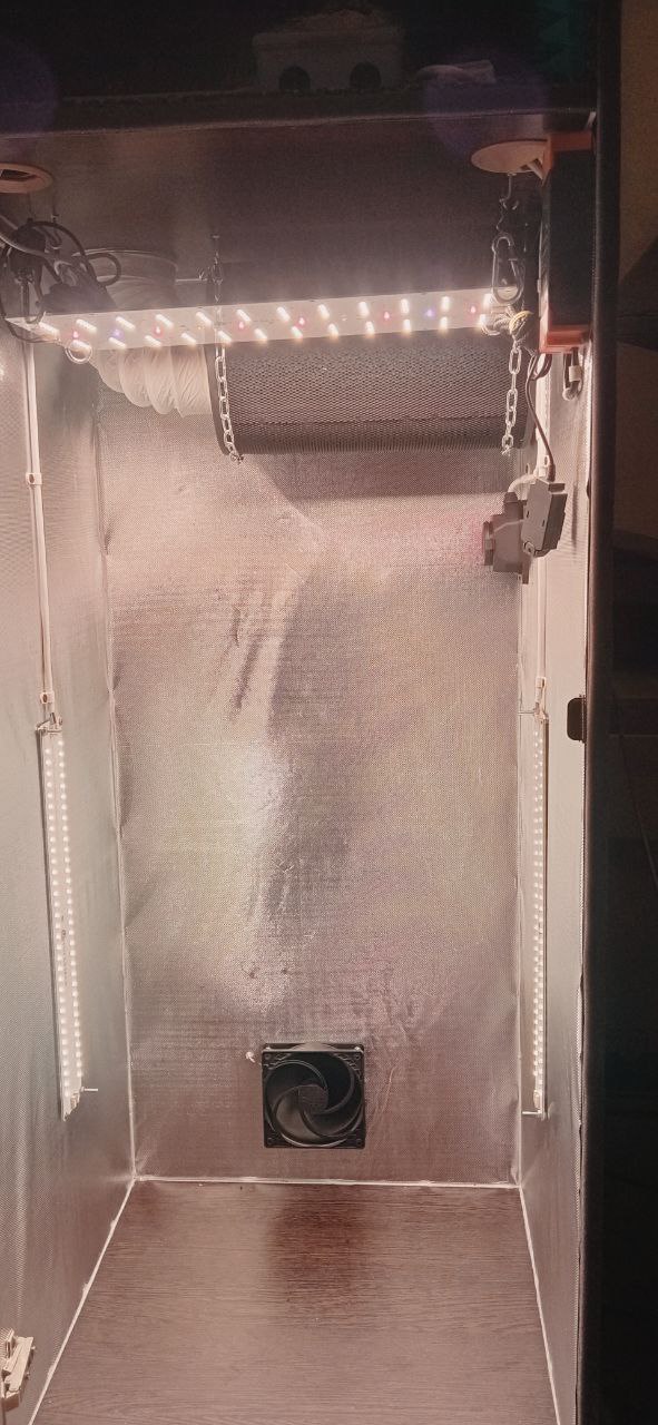 Что дает наличие технического отсека в боксе? Во – первых – это удобно. Меньше проводов – меньше путаницы – удобнее будет ухаживать за растением. Во - вторых, техника дает дополнительный прирост температуры в гроубоксе.
