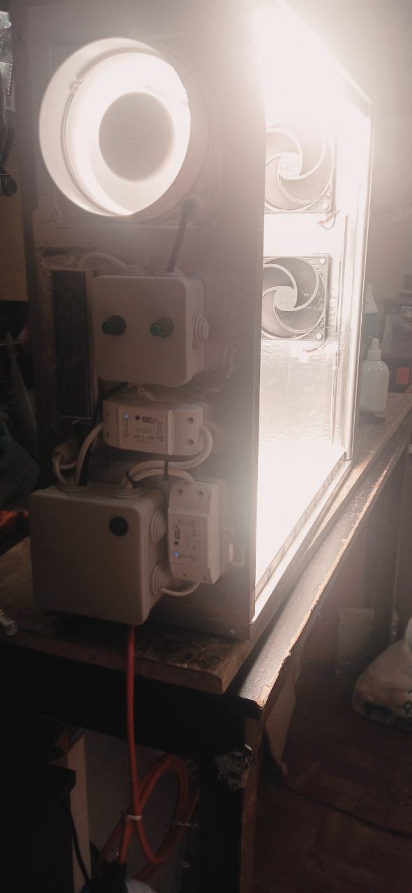 Принцип работы? Лампа включается автоматически по таймеру вместе с вентилятором (в противном случае она может выйти из строя от перегрева) вентияторы обдува тоже работают по таймеру. Полив растений вручную.